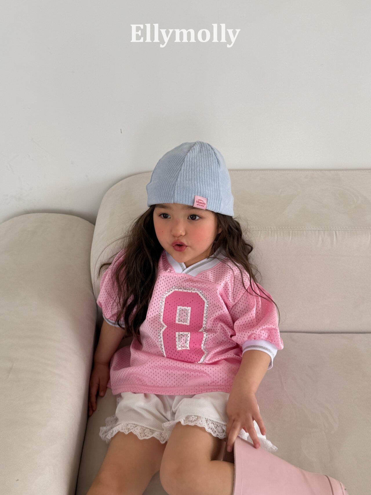 【予約】ellymolly/mesh puff v-neck T